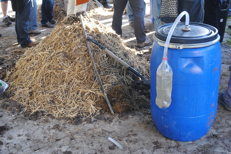 Por eso un aspecto importante del taller fueron las sesiones prácticas en las que aprendimos a elaborar nosotros mismos toda una serie de elementos que sirven para mejorar la fertilidad de nuestras tierras rápida y eficazmente, y sin apenas gastar dinero. Los ingredientes necesarios son “low-tech” y accesibles a todo el mundo: mierda de vaca (estos profesores no utilizan eufemismos cuando hablan), harina de rocas (roca en polvo), cenizas, harina de huesos, residuos de la producción de alimentos como la melaza y la cascarilla de arroz, levadura, agua, y en algunos casos, componentes más exóticos como microorganismos capturados en el bosque (¡resulta fascinante aprender a conocer la microbiología que nos rodea!). El objetivo, aportar a la tierra una dosis masiva de microorganismos y minerales que las plantas puedan utilizar para crecer con un sistema inmunitario fuerte y un vigor envidiable, minimizando a la vez los gastos de producción y por tanto el precio final del producto.